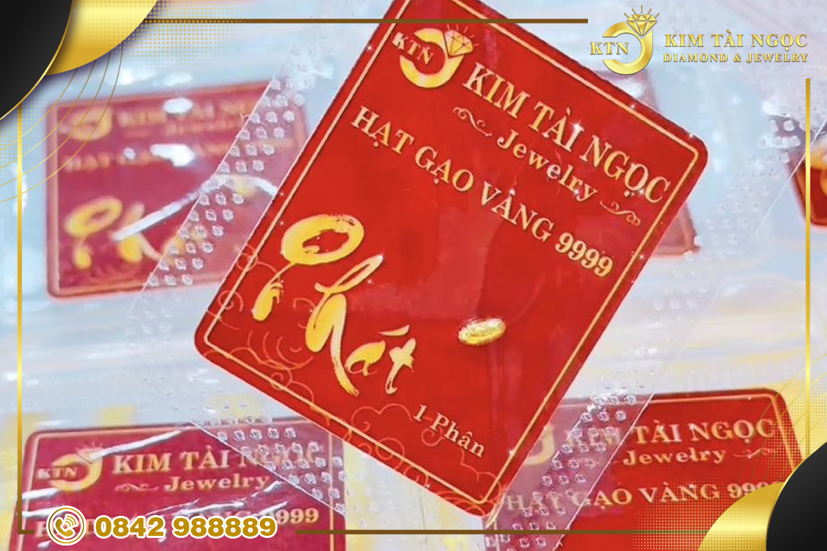 Vàng hạt gạo 9999 là loại vàng có độ tinh khiết rất cao, gần như vàng nguyên chất. Con số 9999 thể hiện hàm lượng vàng lên tới 99,99%.